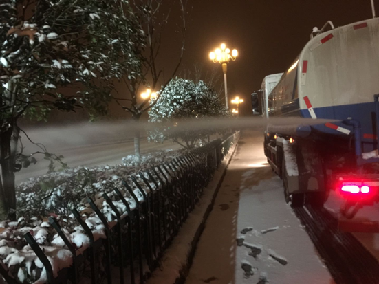 夜晚開始除雪護綠 圖片來源:全椒縣園林所