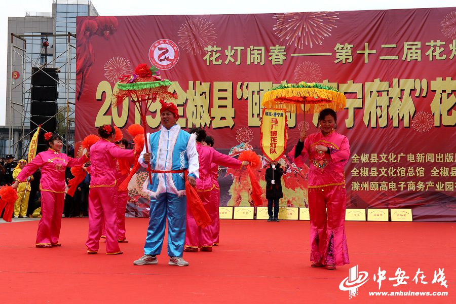 中安在線滁州訊 2月17日(正月十三)下午,由全椒縣文化廣電新聞出版局主辦,全椒縣文化館總館、全椒縣文化傳媒演藝有限公司承辦,滁州頤高電子商務(wù)產(chǎn)業(yè)園有限公司、各鎮(zhèn)文化館分館協(xié)辦的全椒縣第十二屆民間花燈表演大賽在全椒縣政務(wù)中心廣場(chǎng)隆重舉行。