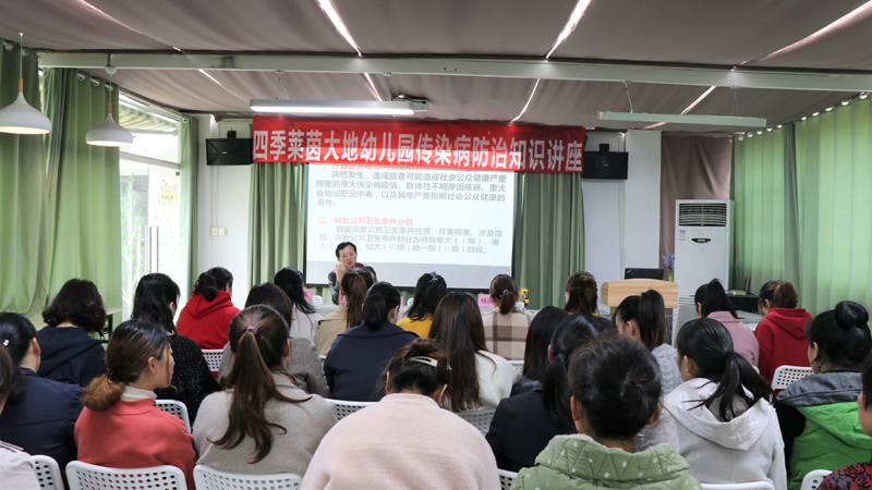 3月29日下午,全椒縣疾控中心健康巡講隊(duì)來(lái)到了全椒四季萊茵大地幼兒園,開(kāi)展“傳染病防治知識(shí)”健康教育講座,給校內(nèi)教職員工送去了一道豐富多彩的健康知識(shí)大餐。