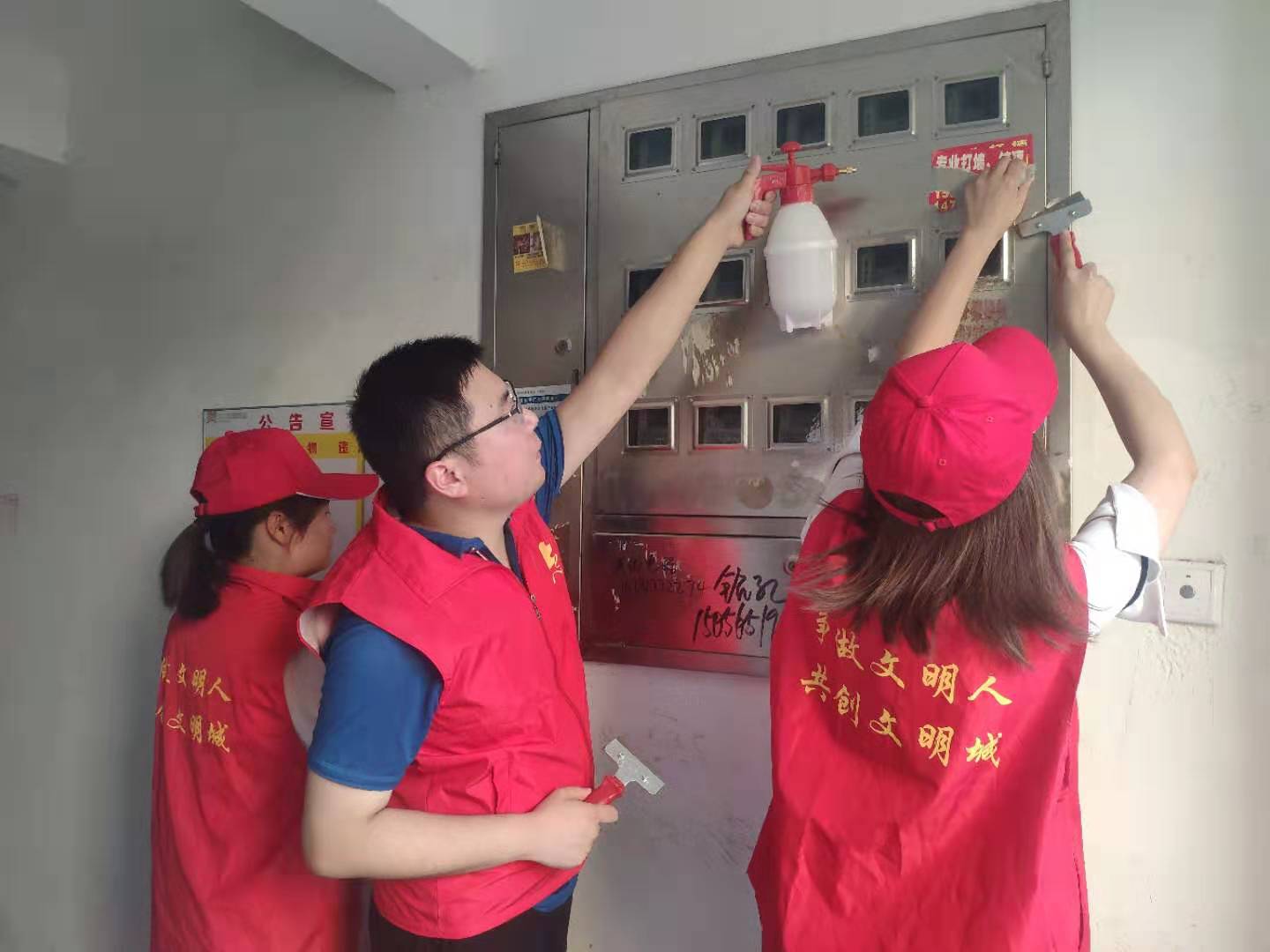 退役軍人事務局深入包保小區(qū)清理“牛皮癬”小廣告