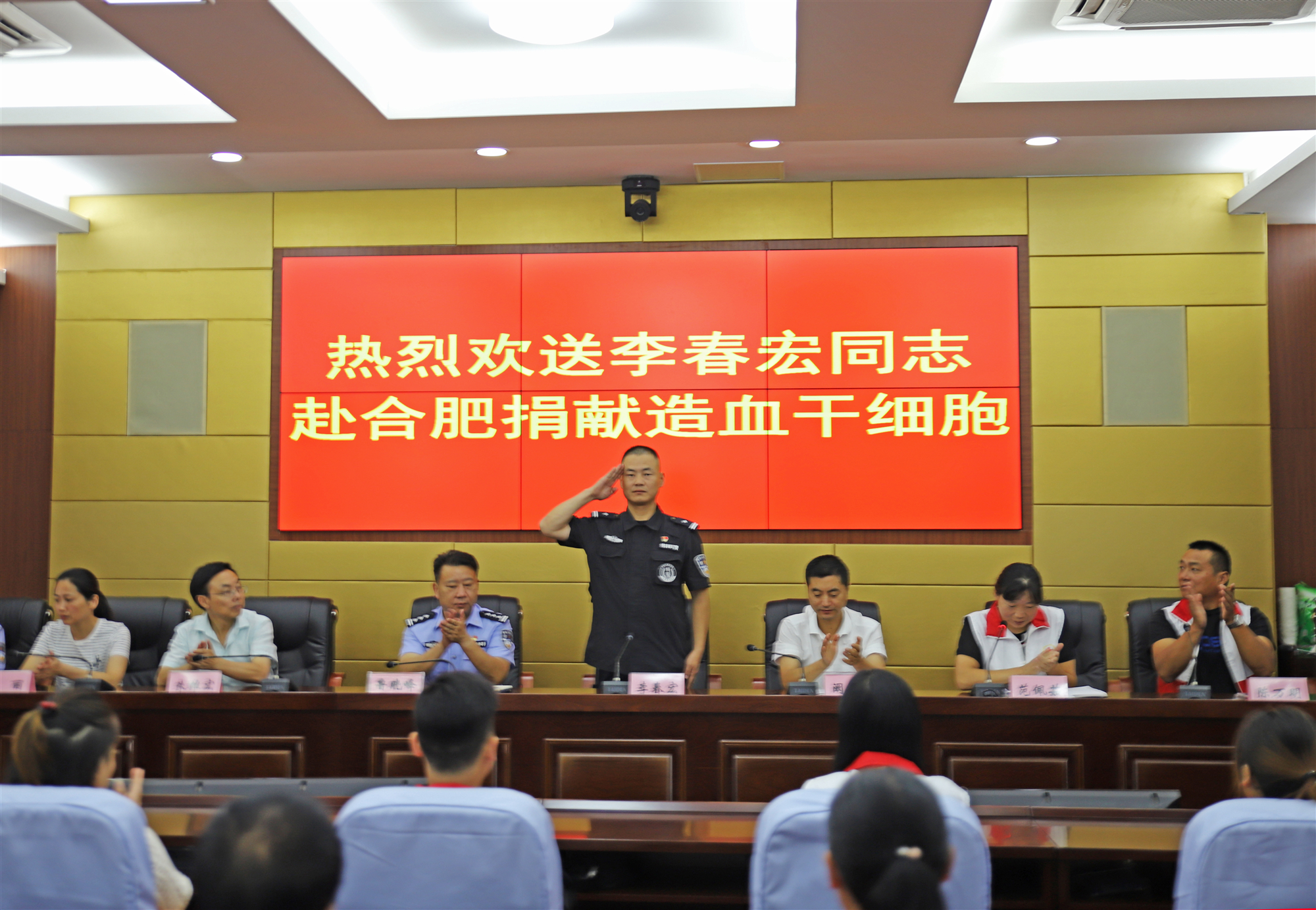 全椒縣首例造血干細(xì)胞捐獻(xiàn)者到場(chǎng)歡送民警李春宏赴合肥捐獻(xiàn)造血干細(xì)胞