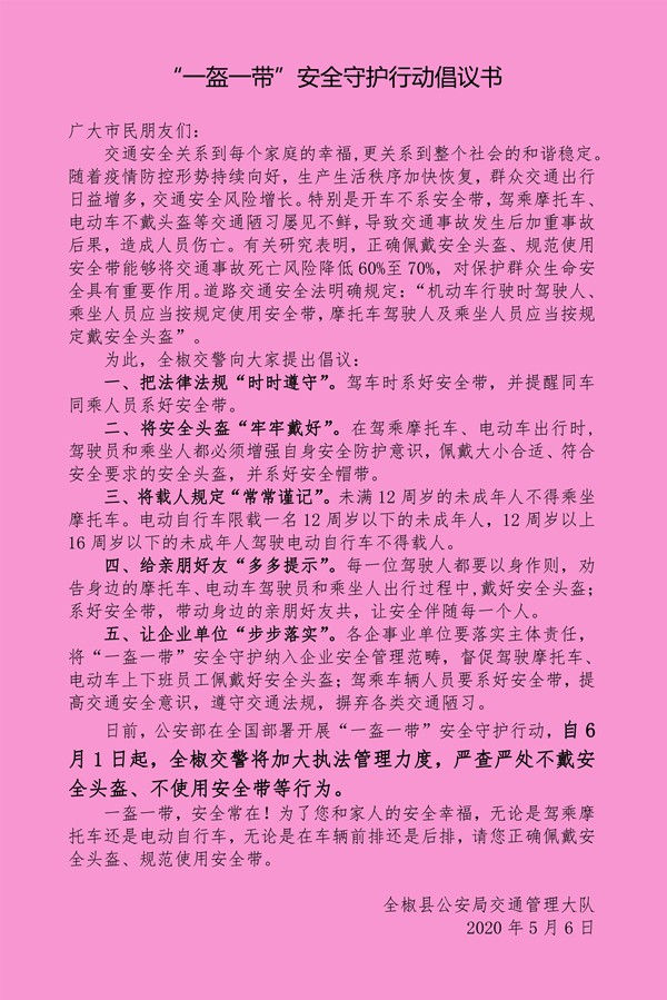 “一盔一帶”安全守護(hù)行動(dòng)倡議書