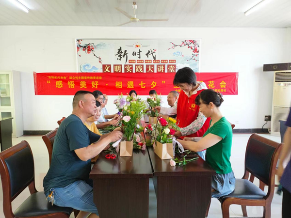 全椒縣秦崗社區(qū)開(kāi)展“感悟美好 相遇七夕”主題插花活動(dòng)