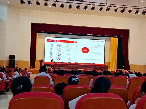 培訓(xùn)老師通過簡(jiǎn)潔、形象、生動(dòng)的語(yǔ)言深入淺出地講解了心肺復(fù)蘇、創(chuàng)傷救護(hù)、止血包扎、氣道異物梗阻以及防溺水、中暑等的和常用急救方法和急救知識(shí)技能等。現(xiàn)場(chǎng)演示了正確的心肺按壓和人工呼吸方式,并組織學(xué)生進(jìn)行了實(shí)操演練。