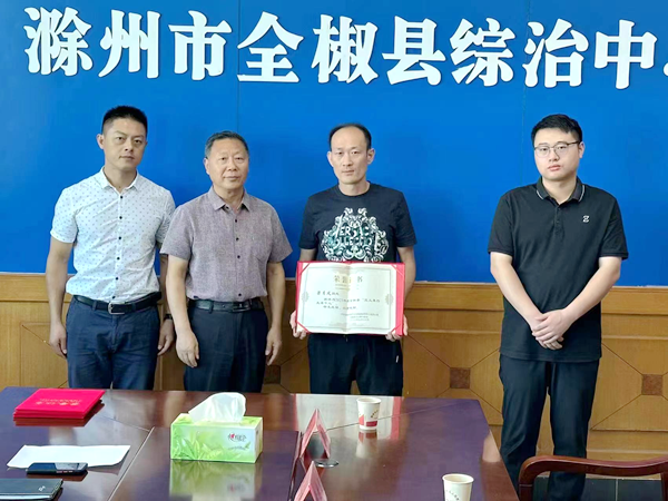 8月3日,全椒縣政法委召開見義勇為表彰會,滁州華藝柔印環(huán)??萍加邢薰締T工梁月風(fēng)被評為2023年度全椒縣“見義勇為先進(jìn)個人”榮譽(yù)稱號。