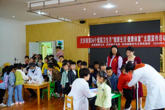 聯(lián)合開(kāi)展校園體檢。武崗鎮(zhèn)愛(ài)衛(wèi)辦聯(lián)合武崗鎮(zhèn)衛(wèi)生院、新時(shí)代文明實(shí)踐所為武崗中心幼兒園的幼兒們提供義診、體檢服務(wù)?;顒?dòng)現(xiàn)場(chǎng)由6名醫(yī)生和3名志愿者,為全園一百余名幼兒提供視力、身高、體重測(cè)量和血液檢測(cè)等體檢項(xiàng)目,同時(shí)利用宣傳視頻,為孩子們普及健康飲食知識(shí),號(hào)召學(xué)校和學(xué)生均衡飲食,適度鍛煉。