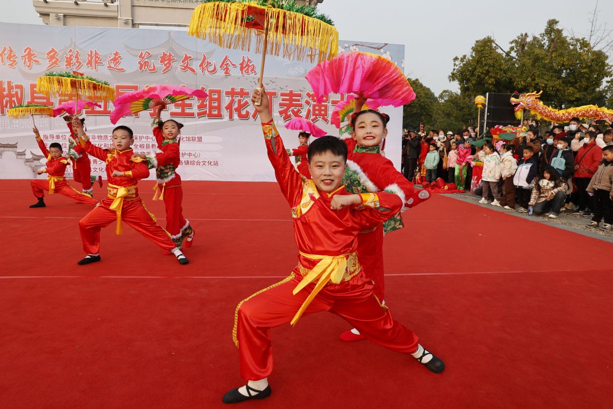 12月7日,全椒縣六鎮(zhèn)鎮(zhèn)明德小學學生在表演花燈《村娃鬧春》。沈果 攝