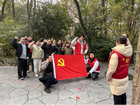 在烈士墓前,社區(qū)黨員們還高舉右手,緊握拳頭,面對(duì)鮮紅的黨旗,重溫入黨誓詞:“我志愿加入中國(guó)共產(chǎn)黨,擁護(hù)黨的綱領(lǐng),遵守黨的章程,履行黨員義務(wù)……”鏗鏘有力的誓言回蕩在山間,彰顯了黨員們不忘初心、牢記使命的堅(jiān)定信念和決心。