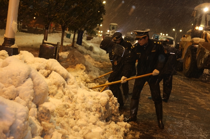 突如其來(lái)的大暴雪,讓縣城的交通以及人民群眾的出行受到嚴(yán)重影響??h公安交警,城市管理執(zhí)法人員作為保暢通主力軍,全員出動(dòng),頂寒風(fēng)、冒大雪,兢兢業(yè)業(yè)、奮戰(zhàn)一線,維護(hù)交通秩序,鏟除路面積雪。