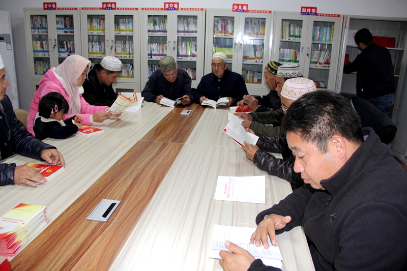 管壩村村民在農(nóng)家書屋里學(xué)習(xí)十九大精神 圖片來源:沈果