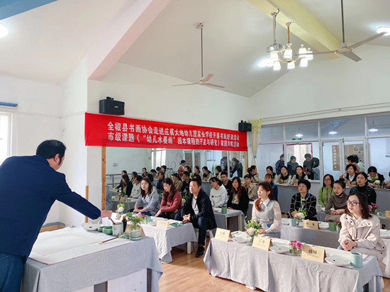 據(jù)悉,此次活動是縣文聯(lián)組織的文藝進校園系列活動之一,旨在讓幼兒園老師及家長親身體驗中華傳統(tǒng)文化的獨特魅力,了解幼兒園水墨畫特色課程,并潛移默化地融入幼兒教育當中,做好家園共育,進一步弘揚和傳承中華優(yōu)秀傳統(tǒng)文化。