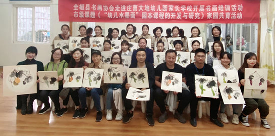 11月1日,全椒縣書畫協(xié)會文藝志愿者走進莊曹大地幼兒園,為學校20多名老師及家長進行現(xiàn)場書畫教學??h書畫協(xié)會主席黃云應邀授課,從執(zhí)筆、繪畫基礎開始教學,讓廣大老師及家長感受中國水墨畫的無窮魅力。