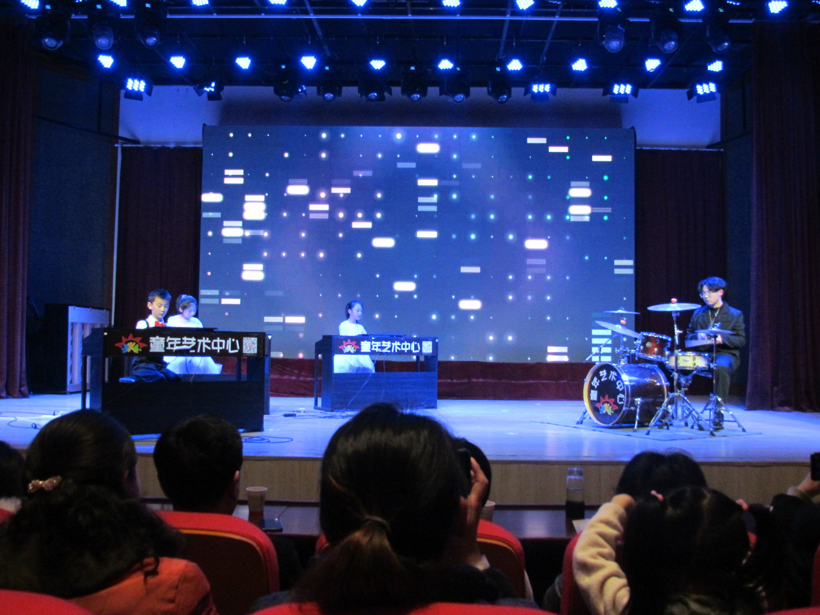 音樂(lè)會(huì)在全椒童年藝術(shù)中心架子鼓齊奏《鼓動(dòng)中國(guó)》中拉開(kāi)了序幕,有女聲獨(dú)唱《七月的草原》,古箏齊奏《山丹丹花開(kāi)紅艷艷》,鋼琴齊奏《克羅地亞狂想曲》,合唱《我愛(ài)你中國(guó)》等節(jié)目。一首首曲目精彩不斷,使人深深陶醉其中。一個(gè)多小時(shí)的精彩演出在觀眾熱烈掌聲中落下了帷幕。