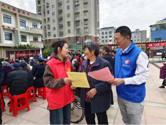 一大早社工和志愿者們便搭好了舞臺(tái),調(diào)試好音響,擺好了凳子,做好演出準(zhǔn)備。八點(diǎn)半,在《中國美》的舞蹈聲中拉開了活動(dòng)序幕,這是來自城南社區(qū)的艷陽天舞蹈隊(duì),在自己家門口表演,她們載歌載舞,充分展現(xiàn)著當(dāng)代勞動(dòng)者的光榮和驕傲;活動(dòng)請(qǐng)到了1054救援隊(duì)給居民進(jìn)行心肺復(fù)蘇、海姆立克等急救方法的介紹;縣垃圾分類宣教中心給居民們帶來了《垃圾分類總動(dòng)員》,將環(huán)保知識(shí)以娛樂的方式傳遞給大家;活動(dòng)尾聲,城南社區(qū)居委會(huì)負(fù)責(zé)人給居民做了雙提升活動(dòng)總動(dòng)員,鼓勵(lì)居民給自己的社區(qū)環(huán)境進(jìn)行打分;工作人員還給社區(qū)居民現(xiàn)場進(jìn)行了宣貫。