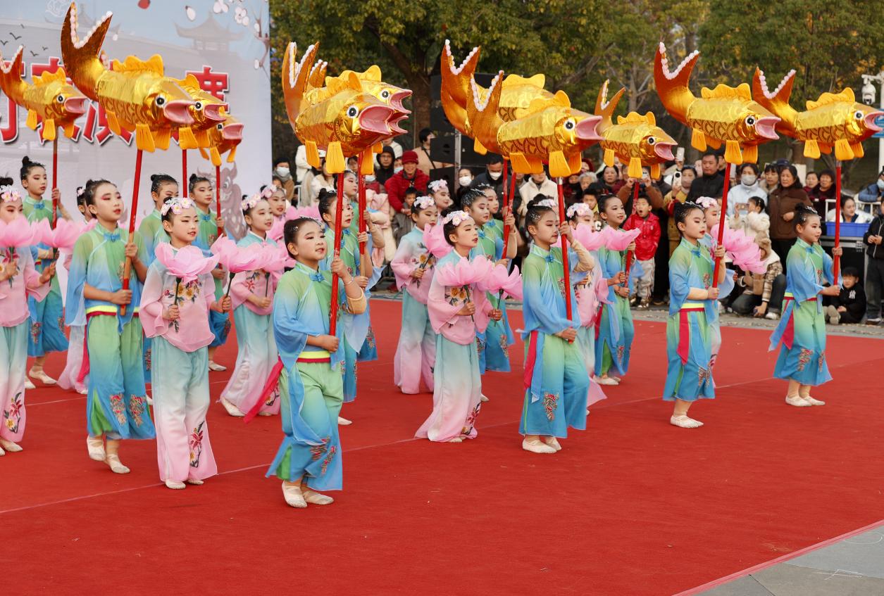 12月7日,全椒縣六鎮(zhèn)鎮(zhèn)明德小學學生在表演花燈《村娃鬧春》。沈果 攝
