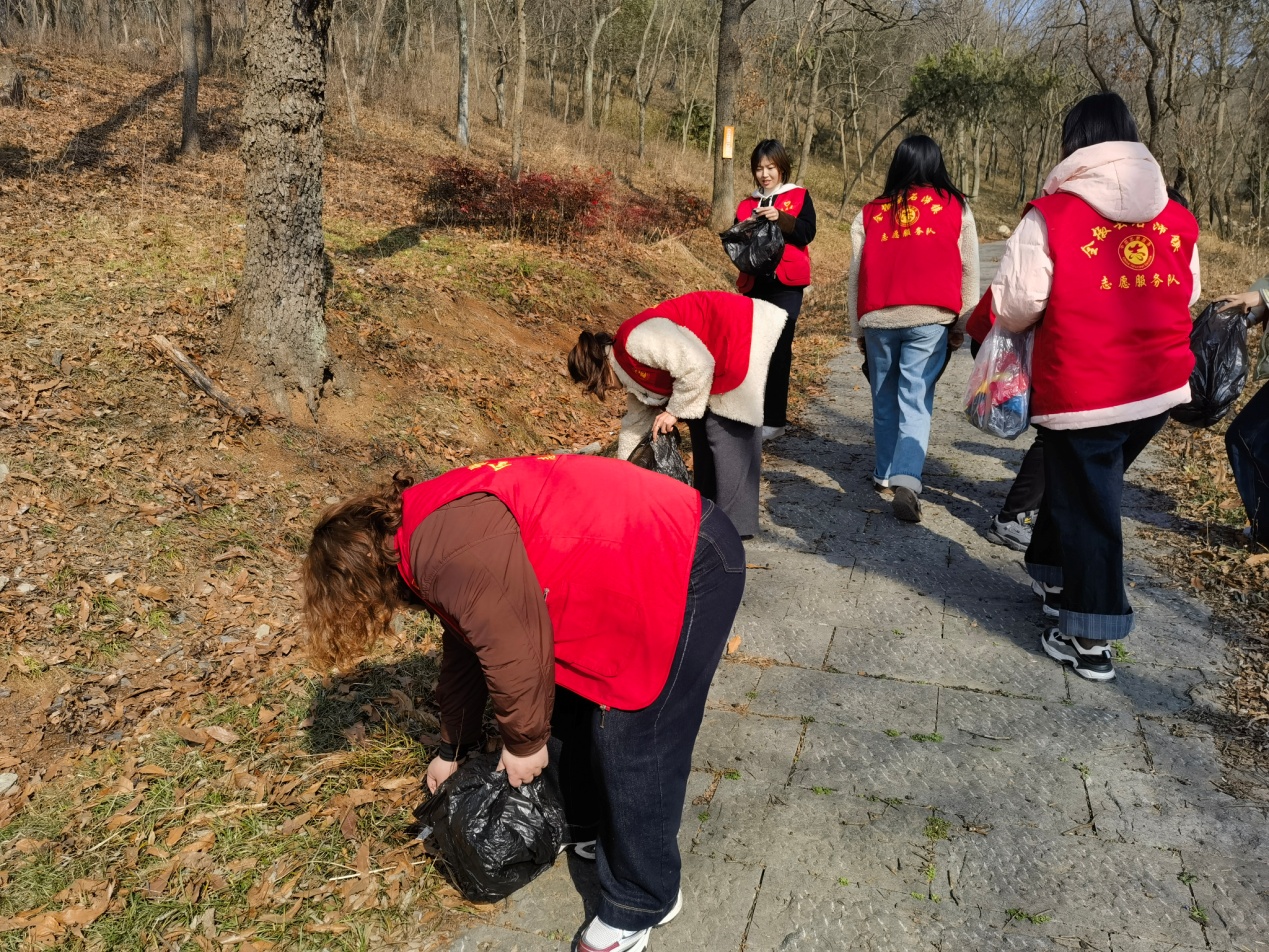 20余名青年志愿者身著紅馬甲,手持清掃工具,向著炮樓山進發(fā)。山路蜿蜒,但志愿者們的步伐堅定有力。他們一邊登山,一邊仔細清理道路兩旁的垃圾,不放過任何一個角落。志愿者們深入綠化帶及一些隱蔽的角落,用手撿拾、用工具清掃,將散落的垃圾清理干凈。對于路上的雜物和雜草,他們也進行了細致的清理,確保道路暢通,環(huán)境整潔。